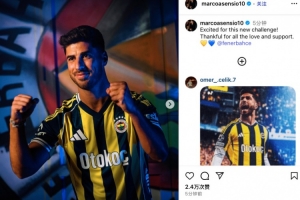 今日阿森西奥在社媒晒出了自己身穿费内巴切球衣的亮相照,并配文写道:“很高兴迎来这次全新的挑战!感谢你们的爱与支持。@费内巴切”