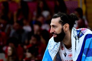 格鲁吉亚球员申格利亚本场比赛手感火热,尤其是三分线外百发百中。
