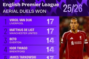 体育资讯9月3日讯 数据机构squakwa统计了新赛季英超球员解围情况,两位荷兰中卫并列榜首。