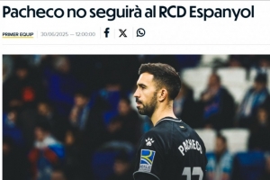 西班牙人写道:“俱乐部宣布,费尔南多·帕切科将不再继续效力于球队。帕切科于2022/23赛季冬季转会期从阿尔梅里亚加盟。俱乐部感谢他在这两个半赛季中的付出与奉献。”