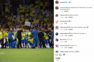 他也在赛后通过社媒晒出全队的合照,并配文道:“和球迷们在马拉卡纳度过精彩的夜晚。”