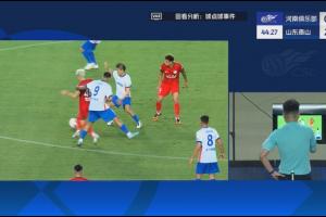 体育资讯06月30日讯 中超第16轮,河南vs山东泰山。比赛第43分钟,泽卡倒钩造刘易鑫手球送点,主裁判第一时间判罚点球,但VAR介入,取消点球。