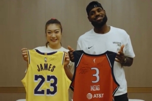 “追星天花板!‘勒布朗梦’@女篮李梦 梦幻同框勒布朗·詹姆斯”耐克官博写道。