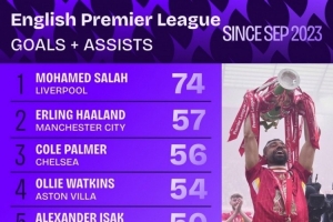 体育资讯9月7日讯 Squawka统计了帕尔默切尔西英超首秀以来的参与进球数量,他在英超参与56球,仅少于萨拉赫与哈兰德。
