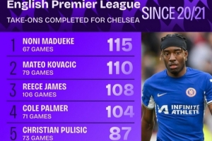 体育资讯9月7日讯 squakwa统计了20-21赛季以来的切尔西英超成功过人情况,马杜埃凯居首,仅3人仍在阵中。