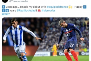 体育资讯9月7日讯 特奥更新社媒动态,纪念法国队首秀4周年,并为皇家社会庆生。
