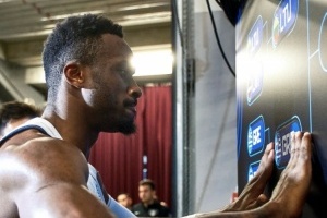赛后,字母哥哥将希腊男篮贴纸贴在了晋级位置,同时用力拍打非常有激情。