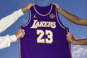 体育资讯7月1日讯 湖人官方发布了新赛季的Statement Edition(宣告版)球衣,并以詹姆斯的23号展示。