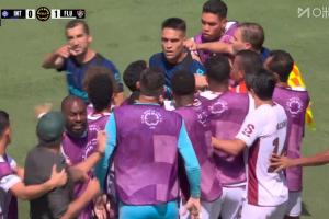 体育资讯07月01日讯 国米vs弗鲁米嫩塞上半场补时,国米边线球被弗鲁米嫩塞主帅高乔踢球,两队在场边爆发冲突!