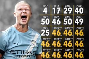 能做到吗?25岁哈兰德需2040年前每年进46球,才能达到生涯1000球