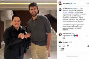 托希尔与皮克会面,他在社交媒体上晒出合照,配文:“与皮克会面,他是一位在足球最高级别赛事中赢得过多项冠军头衔的球员,包括俱乐部层面上的欧冠冠军,以及代表西班牙国家队赢得的欧洲杯和世界杯。我们讨论了全球足球趋势以及印尼足球的发展。”