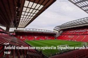 这一奖项完全基于游客的真实评价和评分,彰显了俱乐部对为来自全球各地游客提供难忘体验的坚定承诺。上个月,超过55000名游客参观了这座屡获殊荣的球场及博物馆,创下了新的纪录。也进一步巩固了安菲尔德作为顶级旅游景点的地位,并为利物浦充满活力的旅游业做出了重要贡献。