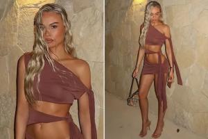 社媒照片中的康妮以一身亮眼穿搭惊艳亮相,让粉丝为之倾倒。身穿一件挖空设计的连衣裙,露出腹部和一侧肩膀。
