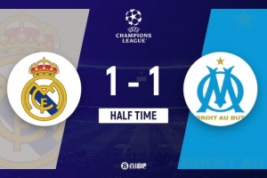 体育资讯9月17日讯 欧冠联赛阶段第一轮,皇马坐镇主场伯纳乌迎战马赛。上半场,阿诺德伤退,维阿爆射破门先拔头筹,罗德里戈造点姆巴佩点射。半场战罢,皇马1-1马赛。