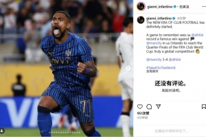 体育资讯7月1日讯 国际足联主席因凡蒂诺今天在Instagram发文,他表示利雅得新月淘汰曼城,是俱乐部足球新时代的开始。