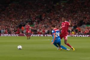 体育资讯09月18日讯 欧冠联赛阶段首轮,利物浦主场对阵马竞。31分钟,伊萨克分球后被勒诺尔芒踩到,痛苦倒地,缓了一会后伊萨克继续比赛。