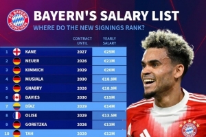 体育资讯9月20日讯 德国转会市场列出了拜仁球员的年薪榜单,凯恩2500万欧居首,诺伊尔2100万欧次席,杰克逊600万欧。