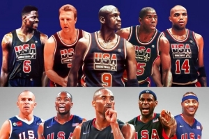美媒clutchpoints晒出梦一队、梦八队和此前在巴黎夺冠的最新梦之队对比,并写道: