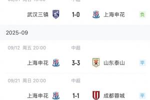 体育资讯09月21日讯 今日中超焦点战,蓉城1-1绝平申花,值得一提的是,申花已经连续三轮最后时刻丢球,两场遭绝平,一场被绝杀。