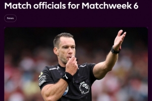 英超第6轮裁判:吉莱特执法纽卡阿森纳,胡珀执法切尔西布莱顿