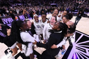 事实证明市场就吃这一套,在球队官宣队名、队徽和球衣颜色之后,女武神队的周边产品就迅速卖遍全美甚至全球。其中象征“庄严、神秘、自信”的紫色尤其受欢迎,2024年,这支空壳球队竟然成了WNBA的销冠,建队完毕之后,在大通中心的前九场比赛门票也全部卖光——整整16万张门票,彻底刷新了美国女篮乃至北美女子职业体育的纪录。