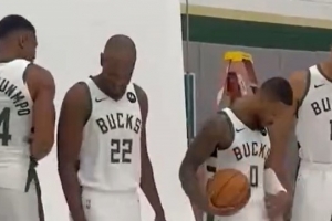 有媒体晒出了利拉德加盟之初的一个瞬间。在2023-24赛季开始前的媒体日拍摄环节,利拉德和字母哥、米德尔顿、大洛一起合影,当时利拉德感叹:“我从来没拍过这种合影,兄弟。”以此感叹自己终于身处一个有争冠实力的球队。但两年过去了,合影中的四人,只剩了字母哥一人还在队中。