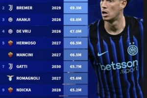 体育资讯9月26日讯 德国转会市场盘点了意甲中卫税前薪资情况,国米的巴斯托尼以1020万年薪居首,尤文的布雷默以930万欧元年薪位居次席。值得一提的是,国米新援阿坎吉以880万欧元位居第三位。