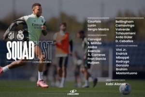 体育资讯9月26日讯 北京时间明天晚上22点15分,皇马将在西甲第7轮比赛中客场对阵马竞,皇马公布了此役的球员名单,吕迪格、阿诺德、门迪继续缺席。