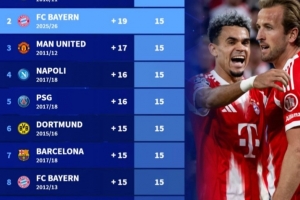 五大联赛前5轮后最佳战绩:本赛季拜仁第二,10/11赛季切尔西第一