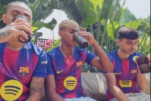 巴萨官方社媒晒出25-26赛季主场球衣的宣传视频拍摄花絮,亚马尔、莱万、拉菲尼亚等多位队内球员出镜。