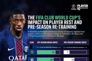 FIFPRO指出,根据相关研究,球员赛季之间的休赛期建议为28天,而季前训练时间也建议为28天,但受到世俱杯的影响,球员们根本得不到应有的休息时间。