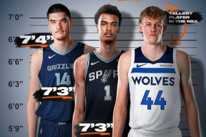 体育资讯7月2日讯 NBL晒出了一张特效图,列出了新赛季NBA最高的三位球员。第一位是灰熊中锋扎克-埃迪,他的裸足身高是224CM;第二的文班亚马221CM;第三的则是来自NBL的球员、在第45顺位被森林狼选中的罗科-齐卡尔斯基,他的身高是221cm。