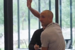 中间惊现某蹭饭的老秃~”马刺官博在视频旁边写道。