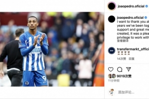体育资讯7月2日讯 切尔西官方宣布签下23岁若昂-佩德罗,合同8年。若昂-佩德罗更新社交媒体发文向布莱顿告别。