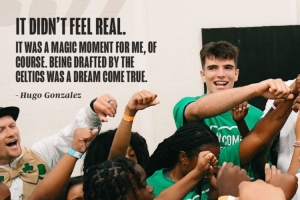 体育资讯7月3日讯 绿军新秀乌戈-冈萨雷斯在球迷活动中,和小球迷分享到自己被选中的经理:“那一刻感觉不真实,对我来说是个神奇的时刻,被凯尔特人(第28顺位)选中,实现了我的梦想。这是NBA历史上赢球最多的球队,能成为这样的球队一员是一种荣幸”