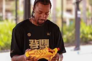 波普在此次展示中的的为改款球鞋火把节配色,据悉该款球鞋已于近期上市售卖。