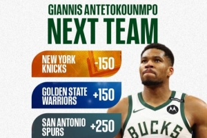 体育资讯10月9日讯 根据BetUS NBA的数据显示,字母哥下家最大热门就是尼克斯,而勇士、马刺等队也都被认为是他的潜在热门下家。