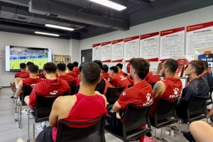 体育资讯7月3日讯 官方消息,青岛红狮全队集体学习最新版足球竞赛规则。