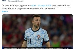 初步迹象表明,葡萄牙球员迪奥戈·若塔(Diogo Jota),现年28岁,目前效力于利物浦足球俱乐部,以及他的兄弟安德烈(Andre),佩尼亚菲尔(Peñafiel)俱乐部的球员,是周四凌晨12点半后在塞尔纳迪利亚(Cernadilla)地区A-52高速公路65公里处发生的一起悲惨事故中不幸身亡的两名年轻人。卡斯蒂利亚和莱昂地区的1-1-2操作中心接到多起报警电话,称一辆汽车冲出道路并起火燃烧。事故现场迅速出动了交通警察、萨莫拉省消防队以及紧急医疗服务中心(Sacyl)的紧急协调中心(CCU)。协调中心派遣了一支紧急医疗单位(UME)以及蒙布伊(Mombuey)健康中心的初级医疗(MAP)人员前往现场,但他们只能在现场确认两名年轻人的死亡。
