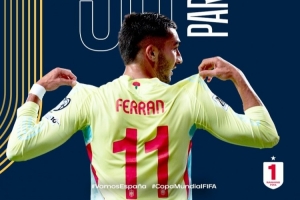 西班牙足协官方晒出了费兰-托雷斯50场比赛的海报,并配文写道:“为国家队出战50场,祝贺费兰-托雷斯!”
