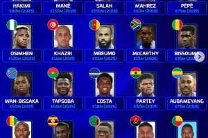德转非洲各国历史身价最高球员:萨拉赫、马内1.5亿欧并列榜首