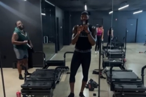 詹姆斯晒出他在当地时间凌晨5点47分在健身房与高中队友Sian Cotton一同训练的自拍片段,并写道:“很棒的训练,Cott💪🏾”