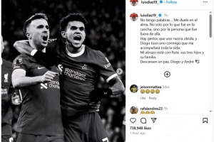 体育资讯7月4日讯 不久前,利物浦边锋路易斯-迪亚斯更新了社交媒体,悼念因车祸离世的若塔兄弟。