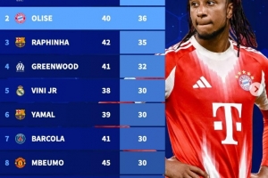 自奥利塞加盟拜仁联赛直接参与36球,边锋位置同期仅次于萨拉赫