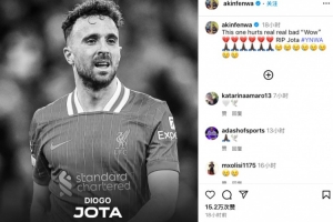 前英格兰球员、红军死忠阿金芬瓦更新社媒致哀,他写道:“这个消息真的让人难过,内心唯有震惊。请安息吧,若塔。”