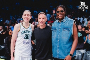 体育资讯7月4日讯 在今天纽约自由人主场89-79击败洛杉矶火花的比赛中,NBA名宿纳什来到了现场观战。而在赛后自由人队的斯图尔特以及琼奎尔-琼斯都与纳什热情寒暄,而有意思的是在与两人的合影中,纳什反而成为了身高最矮的那一个。