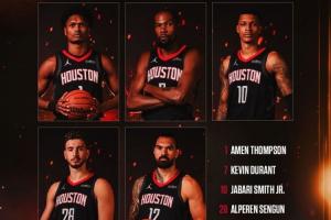 体育资讯10月21日讯 火箭主教练乌度卡透露球队新赛季揭幕战对阵雷霆的首发,分别为阿门-汤普森、杜兰特、小贾巴里-史密斯、申京和史蒂文-亚当斯。