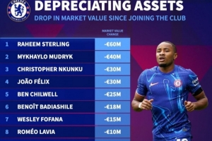 体育资讯7月4日讯 《转会市场》统计了切尔西当前队内球员自加盟后的身价贬值情况,斯特林成为最大输家。