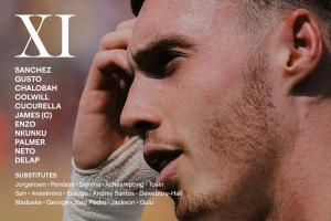 切尔西首发:1-罗伯特-桑切斯、27-古斯托、23-查洛巴、6-科尔维尔、3-库库雷利亚、8-恩佐、24-里斯-詹姆斯、7-内托、18-恩昆库、10-帕尔默、9-德拉普