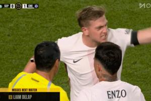 在上半场补时阶段,德拉普染黄,之后德拉普不满抱怨说道:F**k off。